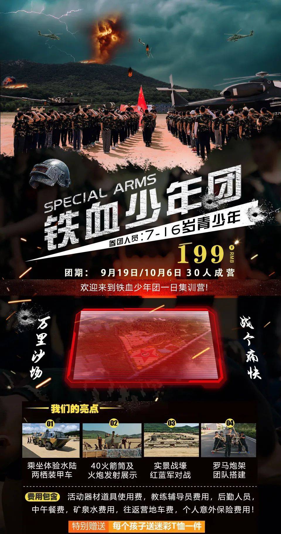 2021真正的铁血精英少年集训营,将带给孩子们一次无与伦比的军旅体验。在这里,他们将组成装备精良、作战英勇的铁血少年部队,进行系统的军事技能训练,参加红蓝军对抗和水弹射击。