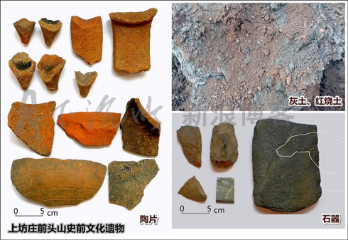 他在现场还发现 发现几处灰土和红烧土,还夹杂着不少碎陶片,还有红砂陶鬲足和扁形鼎足,正是典型的史前新石器时代遗物,类型跟《普查报告》里记载相符。仔细寻找后,还找到砍砸类石器、带刃边石片、磨制光滑有锐口的小石器等。