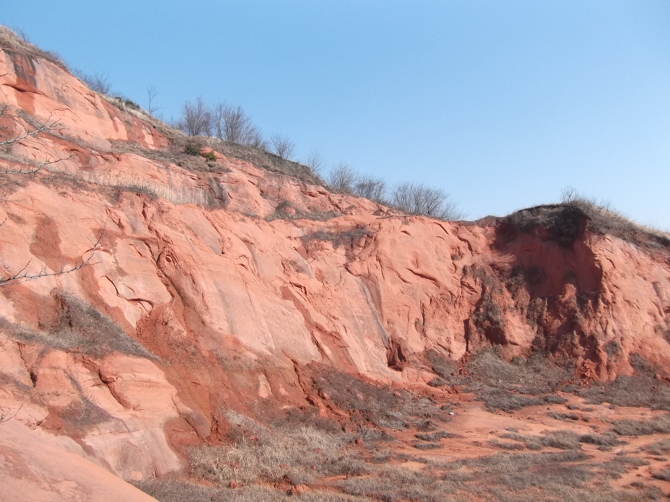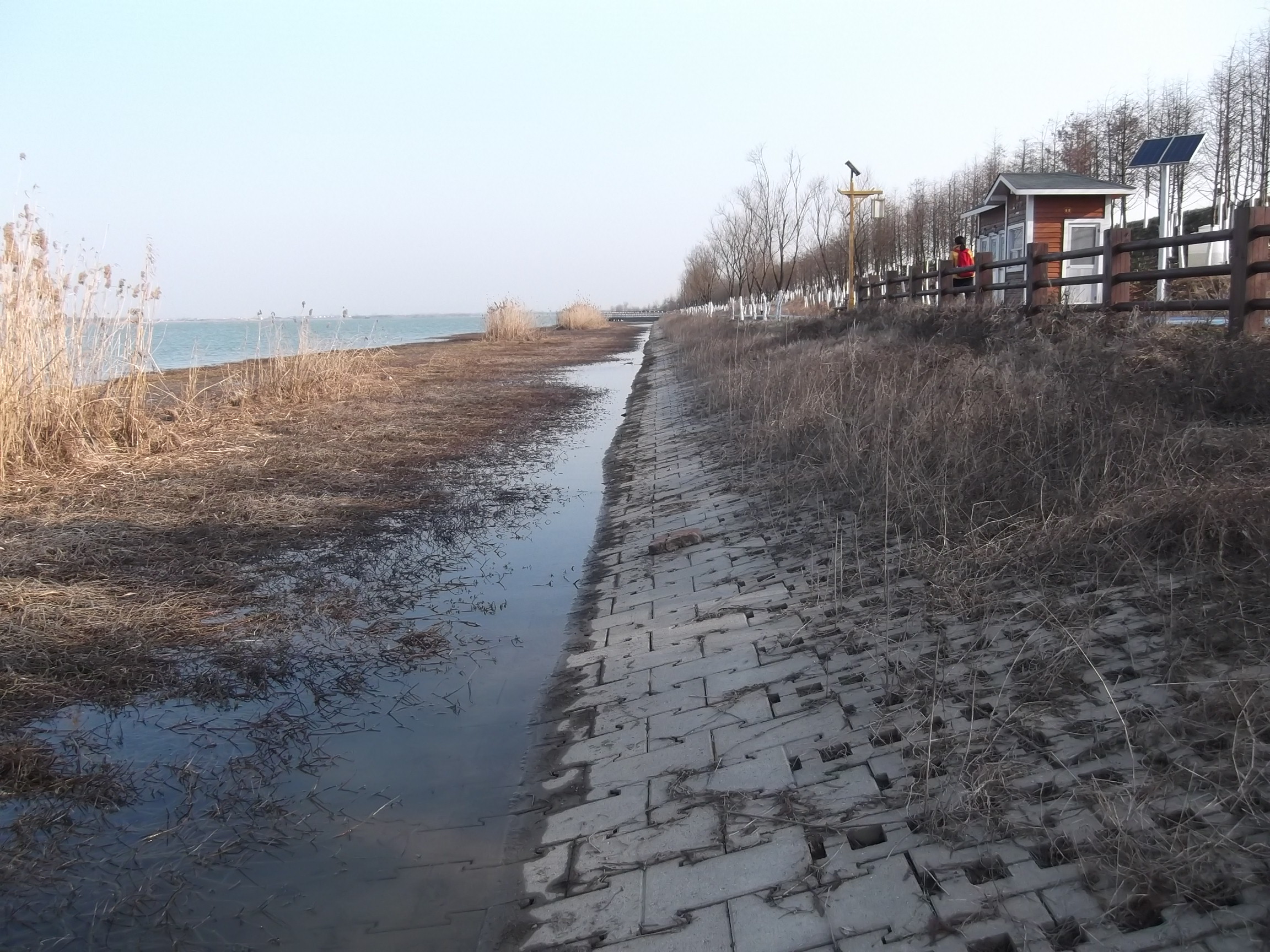 2017 年 1 月 21 日爱心之旅网友张队带领几名绿水行动环保志愿者,前往江宁与句容交界区赤山、赤山湖进行实地考察,徒步环绕赤山,意外发现赤山东南面,山体多处被人为开采,赤红的泥土和山石赤裸裸暴露出来,在阳光照耀下,更显得鲜艳的橙红色,好似日落西山的一片片红艳艳的晚霞,网友们迅速拍摄下“美景”,同时也为此惋惜和担忧,自然环境被如此破坏,接着攀登上赤山顶峰,见到赤山停机坪、碉堡,下山后到赤山湖,环湖一周,惊奇发现赤山湖生态环境如此好,如此美,一片碧青湖水在蓝天白云的映衬下,显得更蓝,宽阔的碧蓝湖面上隐现出几个长满芦苇的小岛,湖面漂浮着成群的野鸭、成群的白鹭,游人路过芦苇荡,也会惊飞出几只鸟,飞向远方,湖边修建多处仿古的草亭,是供游人游玩休息的,还有木质栈道和不锈钢栈道,游人近距离地到湖边观赏、游玩,湖边铺设数段涂彩的绿道,色彩多以蓝、白等自然色组合,鲜艳夺目,美景美不胜收,留连忘返。分享拍摄的图片。