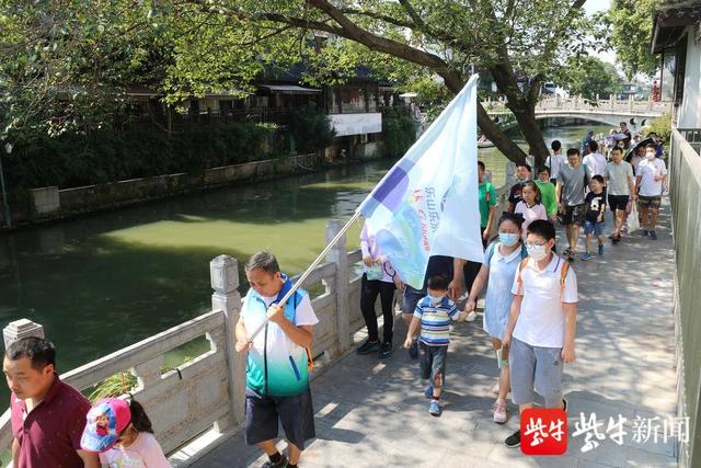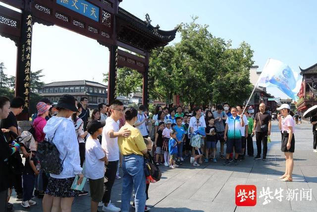 上午10点,江苏“江河卫士联盟”的公益伙伴单位秦淮区夫子庙文旅集团、爱心之旅、凯燕电子公司、南京民盟城建集团支部等,与来自科利华中学、江宁武夷幼儿园、霞光幼儿园、雅居乐花园幼儿园的30组家庭共60多人,冒着高温来到夫子庙天下文枢牌坊下集合。