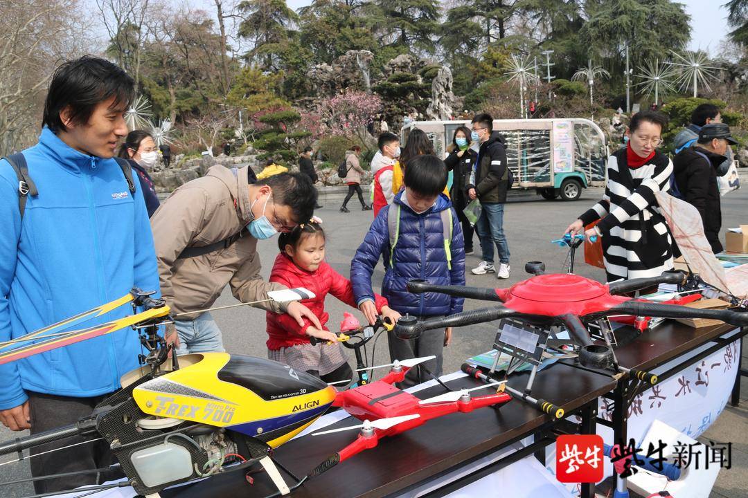 南京祖航公司总经理杨思强,展示自行研发的燃油无人直升机、四旋翼无人机、六旋翼无人机等4架工业无人机,通过现场播放无人机作业视频,向小朋友们科普了这些无人机在自然资源勘查、水样采集、环境保护等方面的应用成果。