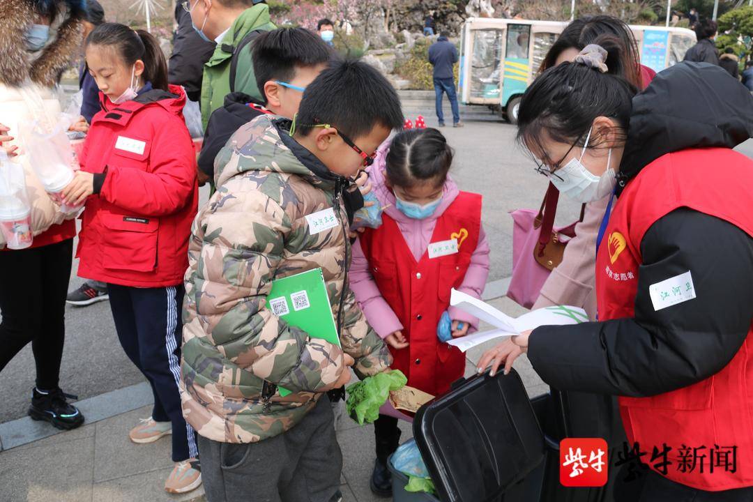 中小学生志愿者们在家长的陪护下,两人一组,分成10多组,分散到“志愿服务站”附近的道路旁,向过往游客们发放《江苏生态文明20条》、《健康生活环保知识》、《美丽中国,我是行动者》、《公民生态环境行为规范》等环保宣传的资料,并劝导游客不能在景区乱扔垃圾,一定要把垃圾放在垃圾桶里。
